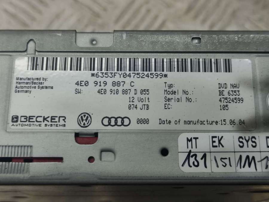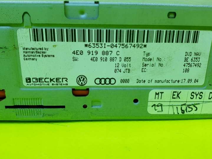 - Номера запчасти: 4E0 919 887 C