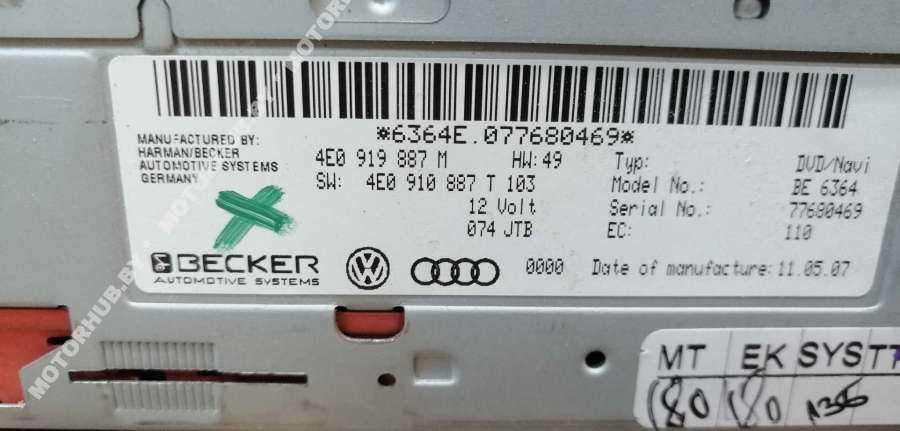 - Номера запчасти: DVD 4E0919887M