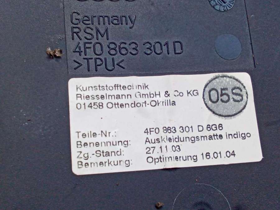 Возможна отправка по Беларуси. 4F0863301D. Коврик консоли.
