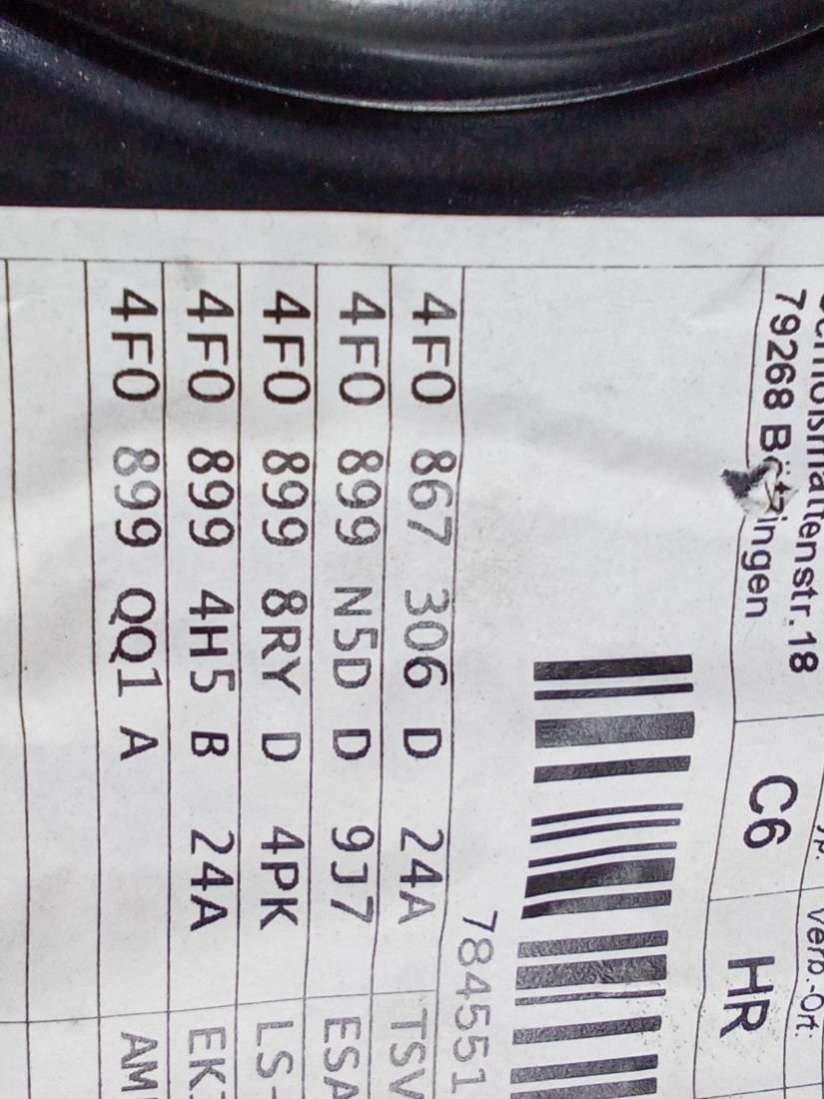 - Номера запчасти: 4F0 867 305 H 4F0 867 306 H 4F1 867 106 A 4F1 867 105 A