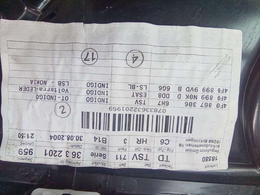 - Номера запчасти: 4F0867306D