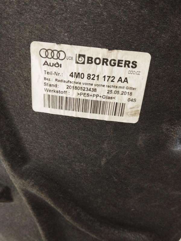 Защита арки колеса (подкрылок) передняя 16- правая =4M0 821 172 P к Audi Q7, 2018