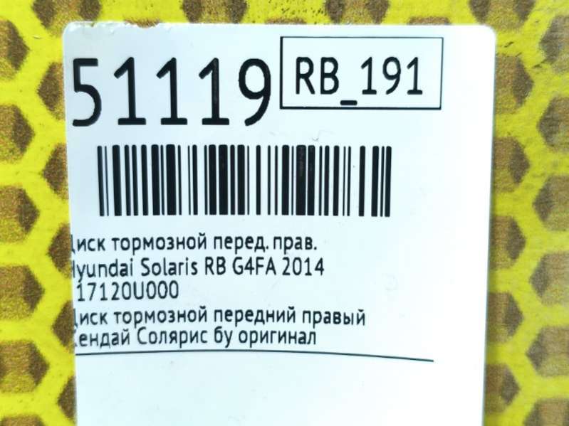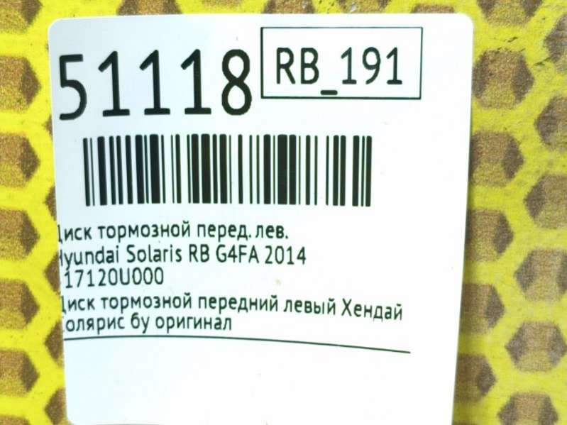 тормозной диск к Hyundai Solaris RB, 2011