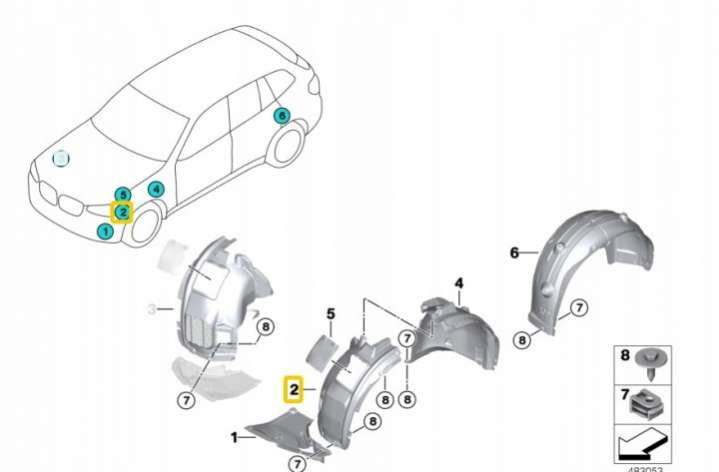 - Название:Подкрылок Пд Пр передняя часть X3 G01, X3 G08, X3 M F97, X4 G02, X4 M F98