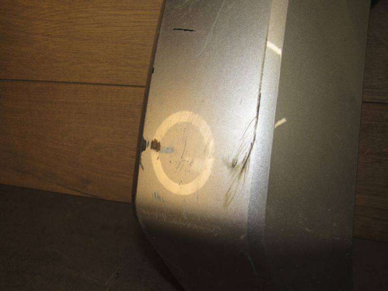 Левый. Крепления целые. Трещин нет. Небольшое вздутие.