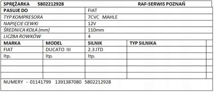 - Номера запчасти: 5802212928 1391387080