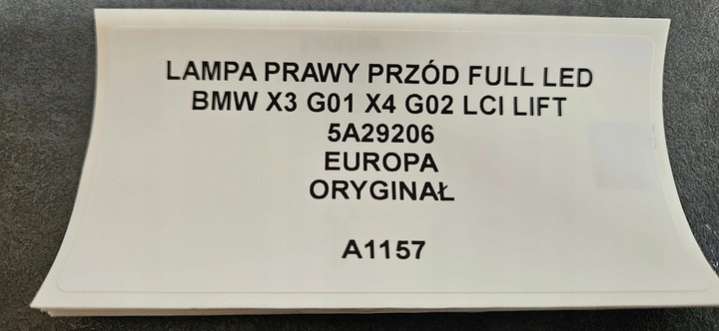 Фара передняя правая к BMW X3 G01, 2024