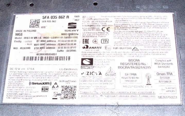 - Номера запчасти: 5FA035862R5FA919606C5WA035507A