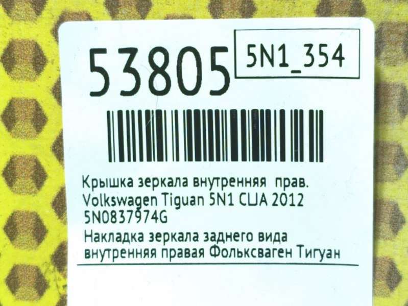 Крышка зеркала внутренняя к Volkswagen Tiguan 5N1, 2012