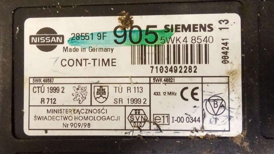 - Номера запчасти: 285519F905 5WK48540
