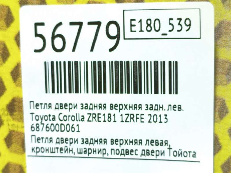 Петля двери задняя верхняя к Toyota Corolla ZRE181, 2013