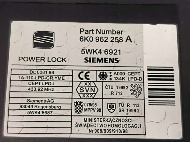 - Номера запчасти: 6K0962258A
