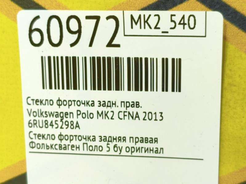 - Название:Форточка задняя правая Volkswagen Polo 5