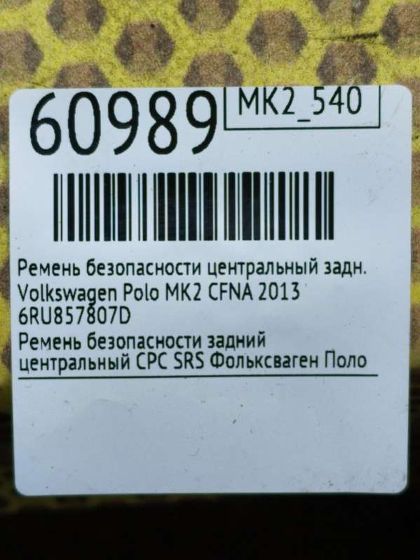 Ремень безопасности центральный к Volkswagen Polo MK2, 2013