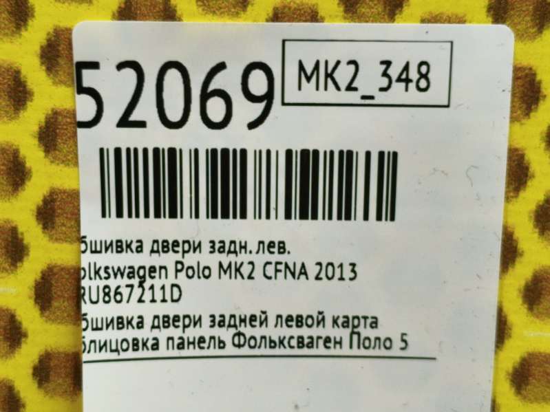 Обшивка двери задней левой (дверная карта) к Volkswagen Polo 5, 2011