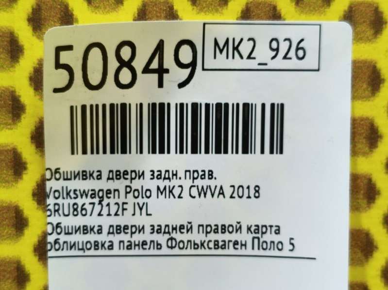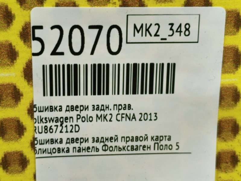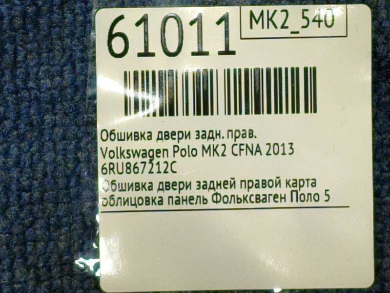 - Название:Обшивка задней правой двери Volkswagen Polo 5