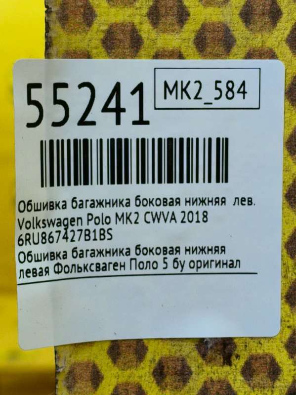 Обшивка багажника к Volkswagen Polo 5- Артикул: adt-336817 Без повреждений.