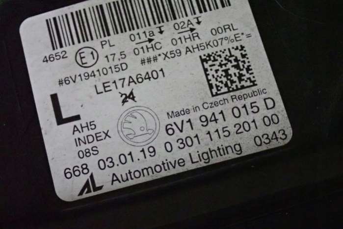 Фара левая к Skoda Fabia 3 поколение [рестайлинг] (2018-2024), 2018