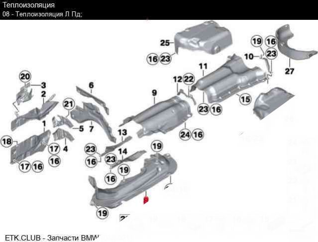 Теплозащита глушителя к BMW 5 F10/F11/GT F07, 2012