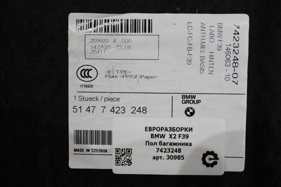 Ковер багажника к BMW X2 F39, 2021