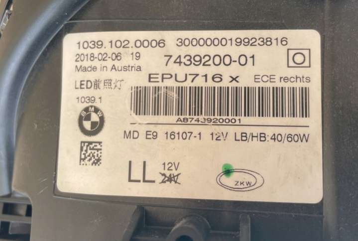 Фара правая к BMW 5 G30/G31 (2016-2020), 2016