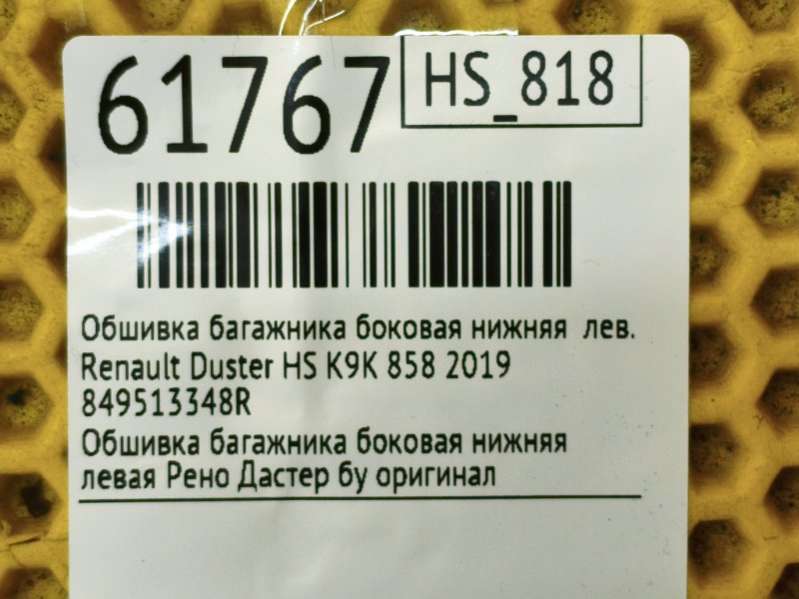 Обшивка багажника боковая нижняя к Renault Duster HS, 2019