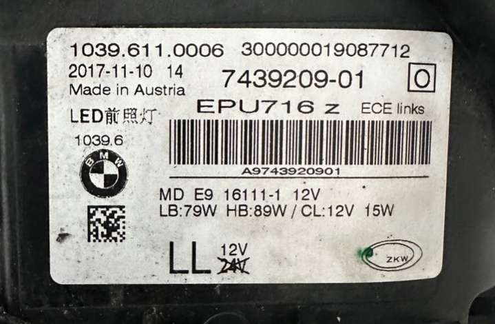 Фара передняя левая к BMW 5 G30/G31, 2016