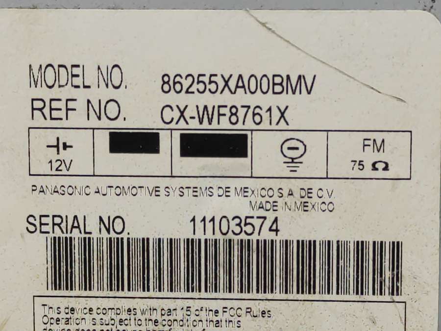 - Номера запчасти: 86255XA00BMV