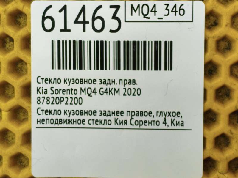 - Название:Стекло кузовное заднее правое глухое Kia Sorento 4
