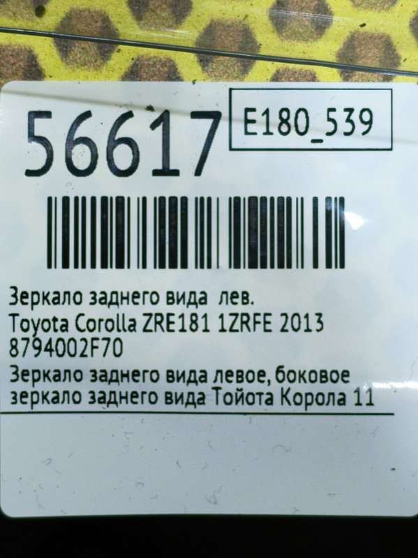 Зеркало заднего вида к Toyota Corolla ZRE181, 2013