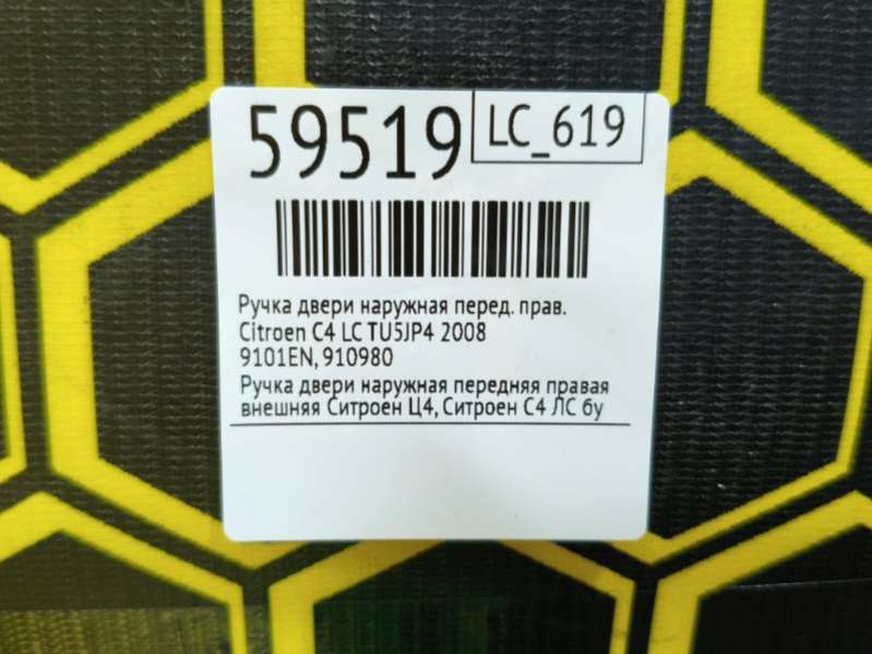 - Название:Ручка двери наружн передн лев с отв для замка PEUGEOT: 407,207,208,2008,308,3008 04-16, CITROEN: C3, C4 Picasso, Jumpy 04-16, FIAT: Scudo 07- (черн)