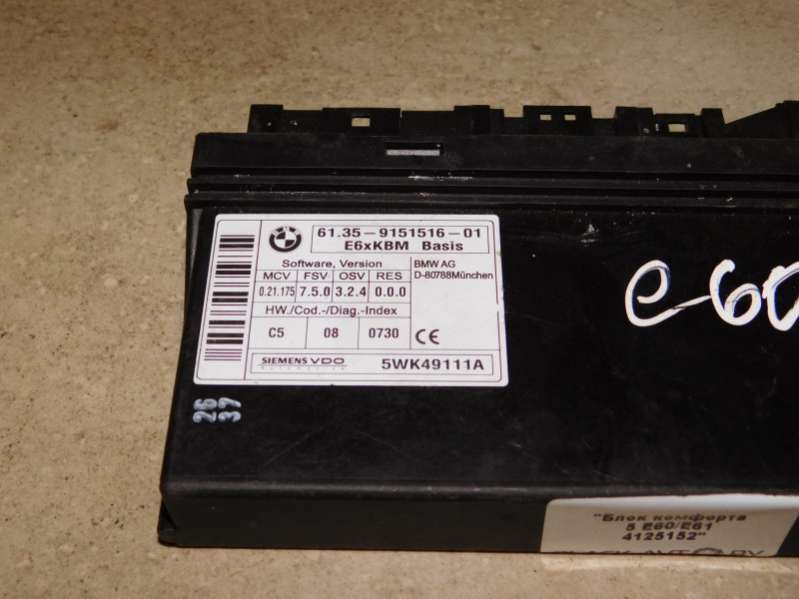 Блок комфорта к BMW 5 E60/E61, 2007