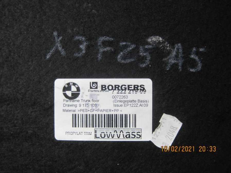 Ковер багажника к BMW X3 F25, 2012 Артикул: BMP-21903464Под заказ: Под заказНомера запчасти: 9175109 7222219Авто: 3.0, Бензин, АКПП, Джип Спросить Позвонить 8691
