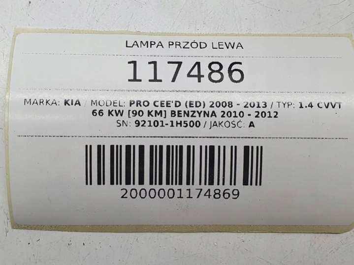Фара левая к Kia Ceed 1 поколение [рестайлинг] (2010-2012), 2010
