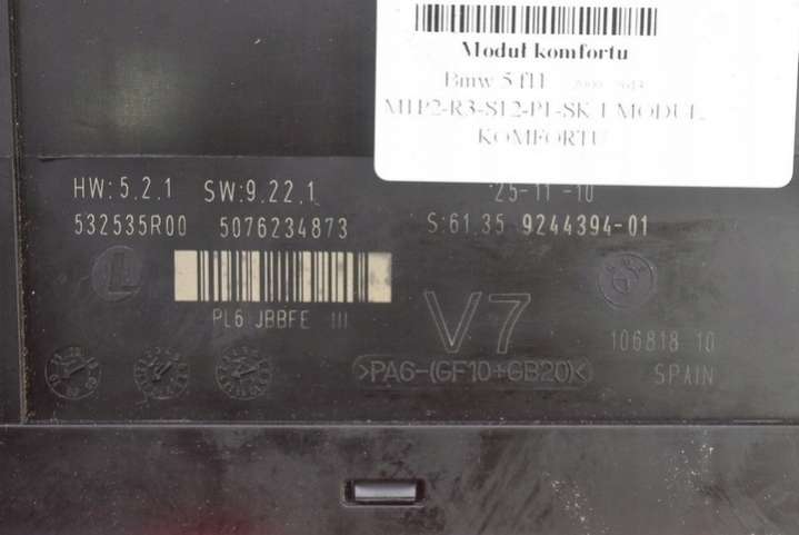 Блок комфорта к BMW 5 F10/F11/GT F07 (2009-2013), 2009
