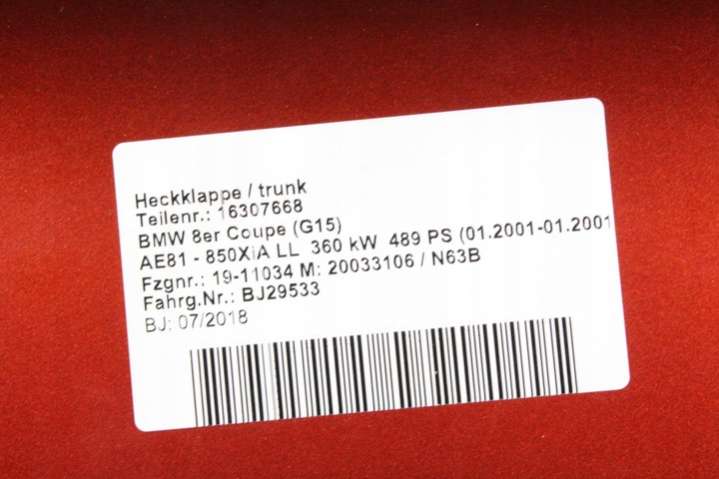 Крышка багажника (дверь 3-5) к BMW 8 G14/G15/G16 2 поколение (2018-2022), 2018
