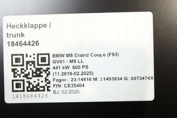 Крышка багажника (дверь 3-5) к BMW M8 1 поколение F91/F92/F93 (2019-2022), 2019