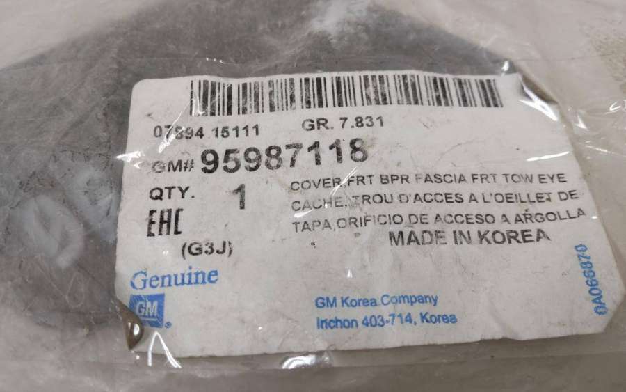 - Название:Заглушка буксировочного крюка переднего бампера Chevrolet Cruze