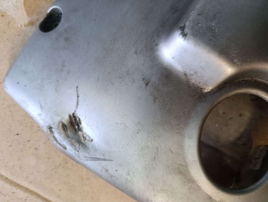 Целые крепления, небольшая вмятина.
