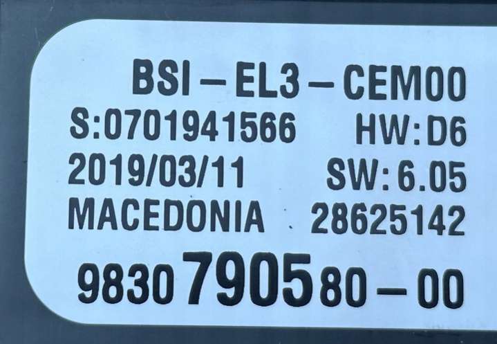 - Номера запчасти: 9830790580EL3