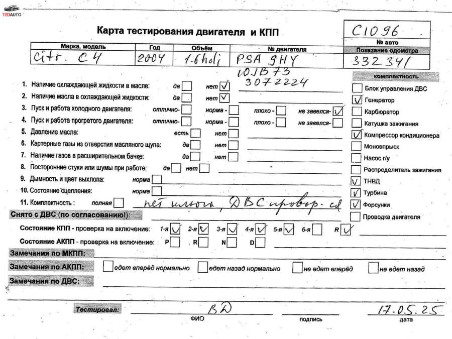 Двигатель дизельный к CITROEN C4 1, 2004