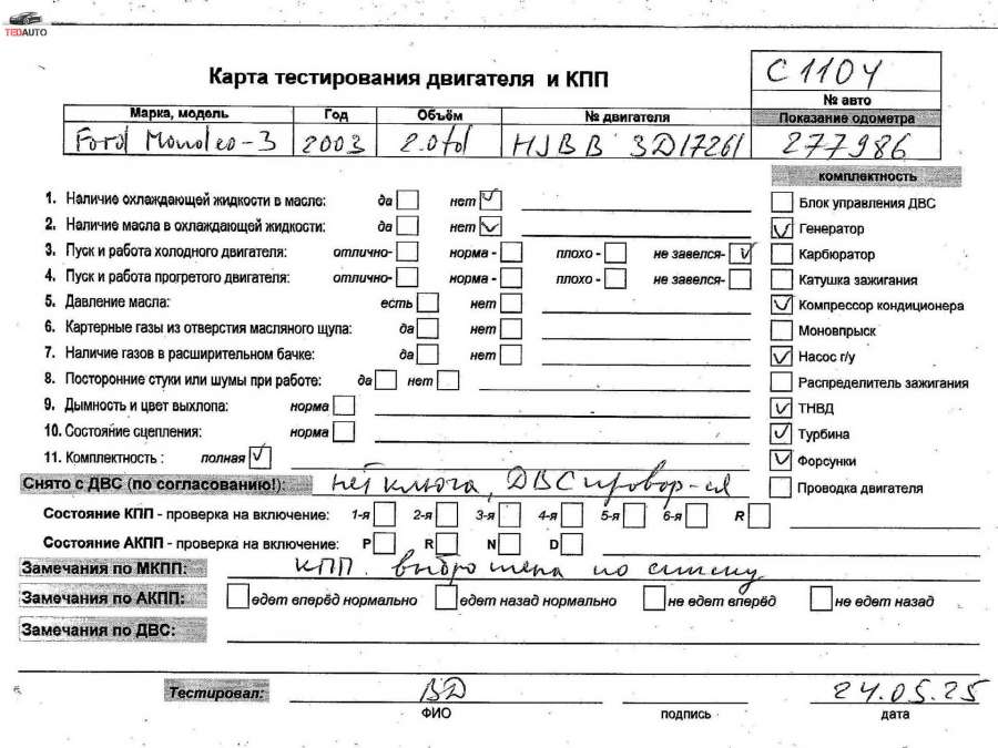 - Авто: 2.0TDCI, Дизель