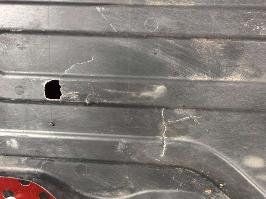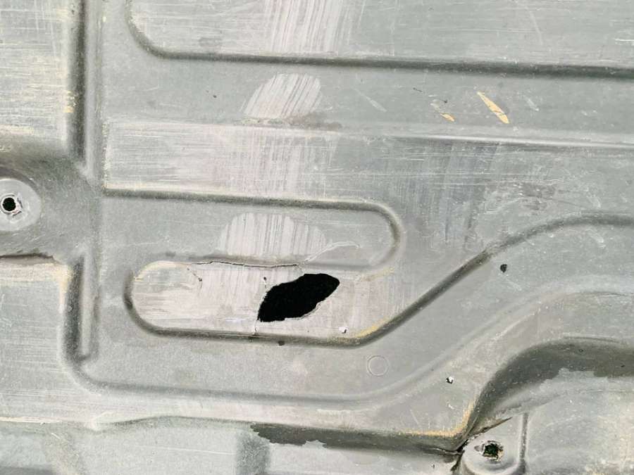 Защита днища задняя правая. Дефекты, трещины царапины