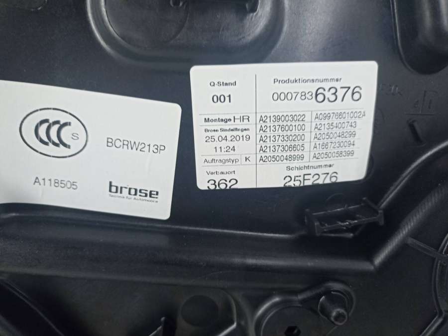 Стеклоподъемник электрический задний правый к Mercedes E W213, 2017