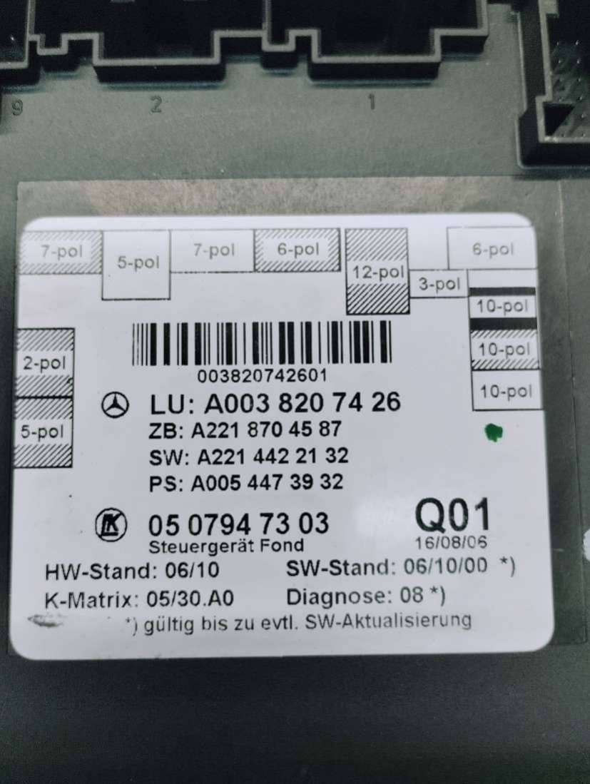 - Номера запчасти: A2214422132A0054473832A0038207326A2218704487