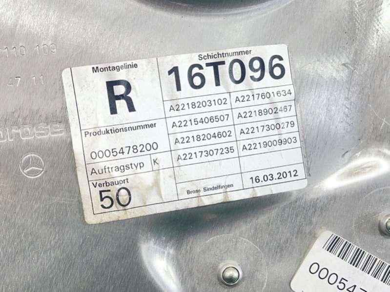 стеклоподъемник к Mercedes-Benz S-Class W221, 2012