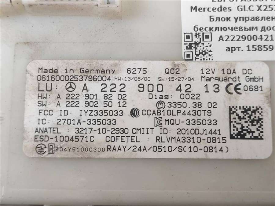 Блок управления бесключевым доступом к Mercedes GLC w253, 2019