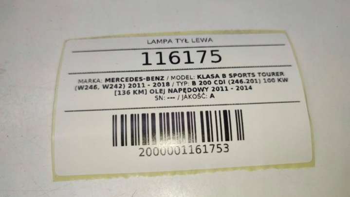 фонарь задний левый к Mercedes-Benz B W246, 2014