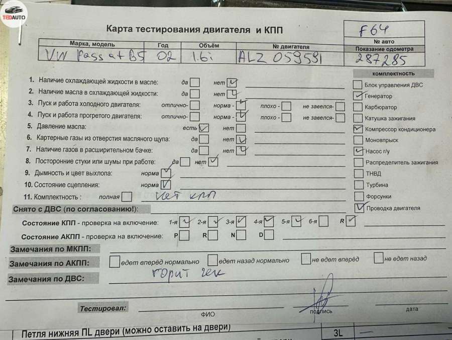 - Номера запчасти: 06B103213T ALZ AZM AWT AWM