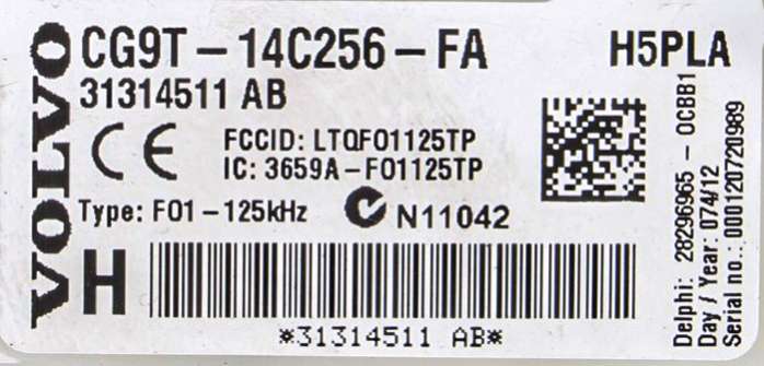 - Номера запчасти: 31314511ABCG9T14C256FA